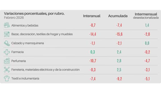 Leer másEn febrero, el sector minorista pyme registró un descenso del 5,6% interanual a valores constantes. La variación mensual evidenció un